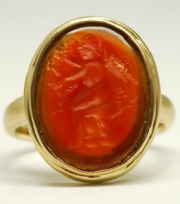 ![]() | ● 指輪をはめるという風習は有史以来存在し、はめる指に より指輪に意味があるとされている。 左手の薬指につける指輪は「結婚指輪」とされ「聖なる誓 い」の意味が付される。 ● このインタリオ(彫刻)は、お客様の知り合いのディーラー の方と長年取引のあるフランスの貴族出身の ディーラー の方から購入されたとのことで、もともとは ジュエリーコレ クターである貴族が所有していた大変貴重なジュエリー なのだそうです。 このインタリオが製作されたのはなんと遥か昔の紀元前 1世紀ごろとのこと。 古代ローマ時代のイタリアで男性が女性へプレゼントする ためにオーダーメイドで当時の職人に製作を依頼したよう |