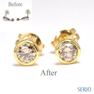 ![]() | お手持ちのピアスを ゴールドピアスにリフォーム お客様お手持ちのピアスをリフォームして 欲しいとご注文いただきました。 お客様より地金はK18(ゴールド)で製作 して欲しいとのご希望でした。 ダイヤをフクリンで留めたシンプルで使い 安いピアスが完成しました。 お客様にもご満足していただきました。 お手持ちのピアスをゴールドピアスにリフォームの詳細は こちら |