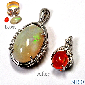 お手持ちの指輪のダイヤとオパール2石をペンダントへリフォーム